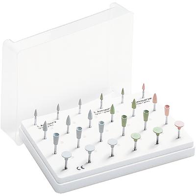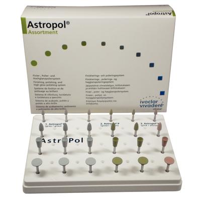 12 Astropol finishers, 3 of each shape: small flame, large flame, cup and disc; 8 Astropol polishers, 2 of each shape: small flame, large flame, cup and disc; 4 Astropol high polishers, 1 of each shape: small flame, large flame, cup and disc