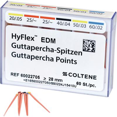 HyFlex® EDM Gutta Percha Points are perfectly optimized for obturating canals prepared with HyFlex® EDM files. They adapt precisely to canal walls while also maintaining their shape and offering optimal tissue compatibility and radiopacity.