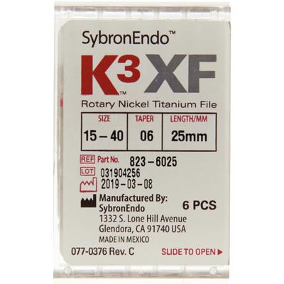 K3™ XF NiTi Files have the safety and self-centering features of the original K3 plus an extraordinary new level of flexibility and resistance to cyclic fatigue provided by R-Phase™ Technology. These files are color coded with matching K3XF verifiers, obturators, gutta percha and paper points for use during root canal procedures.