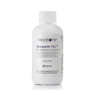 TAC Tray Adhesive Compound is a leading tray adhesive compound available in convenient spray cans or brush-on liquid for use with alginate impression materials. TAC Tray Adhesive Compound securely holds the alginate in the tray when the impression is removed from the patient’s mouth. TAC Tray Adhesive Compound is alcohol-based for faster drying and easier clean-up and can be dissolved with Isopropyl Alcohol.